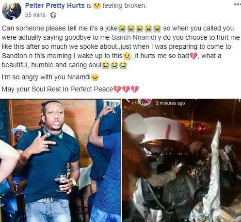 It was gathered that the four friends just left Booth nightclub when they crashed their car around Fourways, Sandton. Nnamdi and Monday died instantly while the remaining two occupants survived.